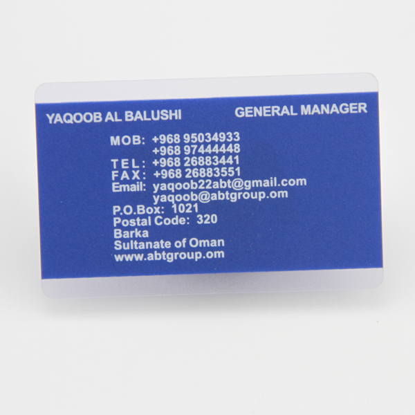 Item Frosted Plastic Card Custom Vertical Frosted Plastic Business Cards Material PVC , PET , PETG , ABS Thickness 0.82-0.86mm or customized Weight: 6g +/-0.5g Size normal size: 85mmX54mm